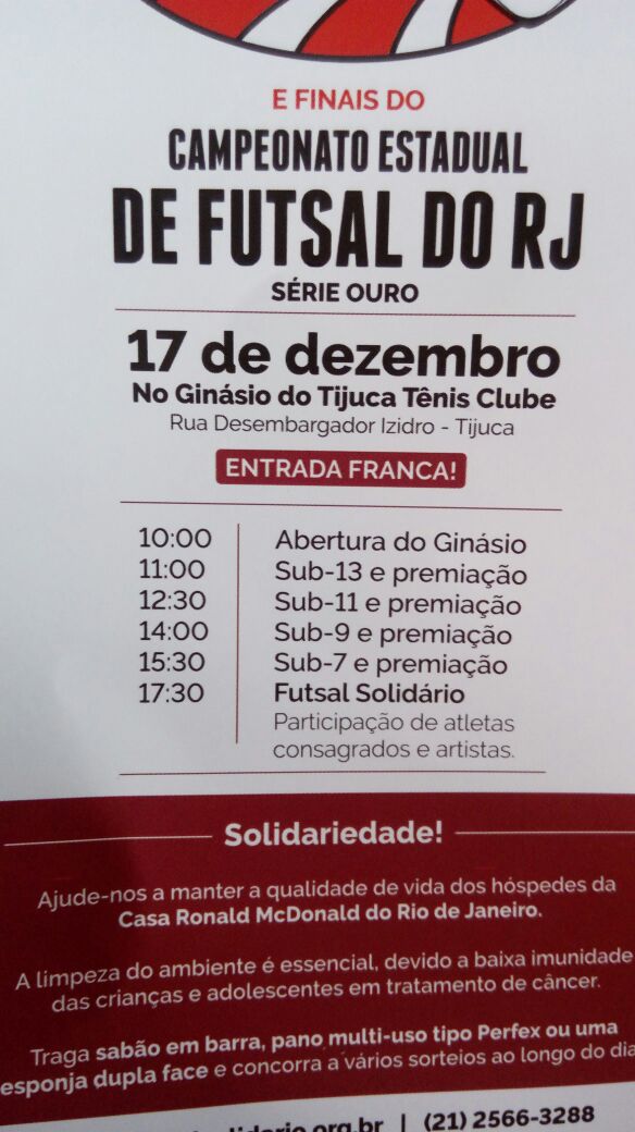 Neste sábado dia 17/12 no ginásio do Tijuca Tênis Clube (Rua Desembargador Izidro Nº 77) o Vasco disputará todas as 4 decisões do Estadual de Futsal – Série Ouro, mostrando a força de sua base.