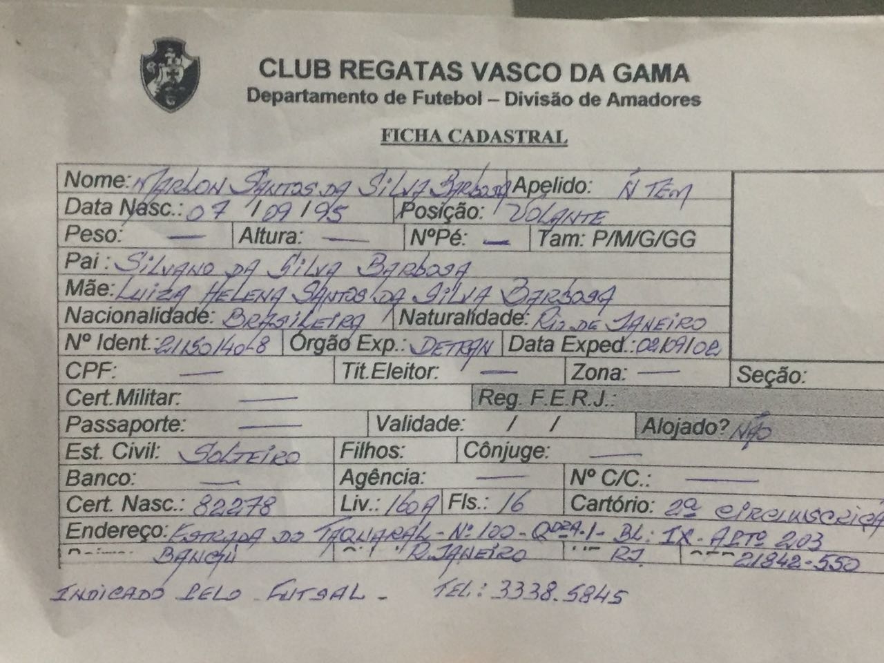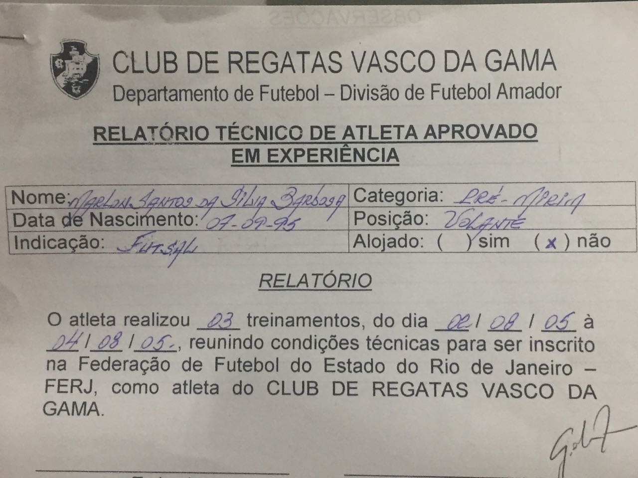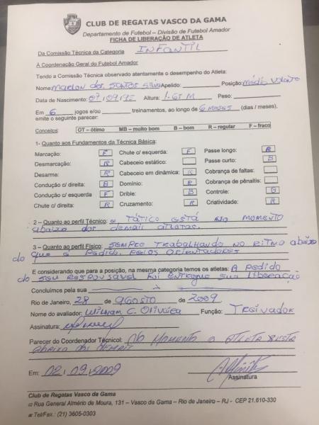 Confira os documentos referentes ao atleta Marlon Santos: