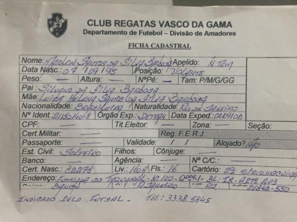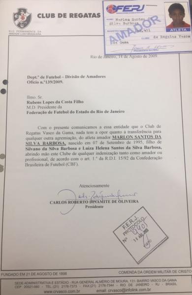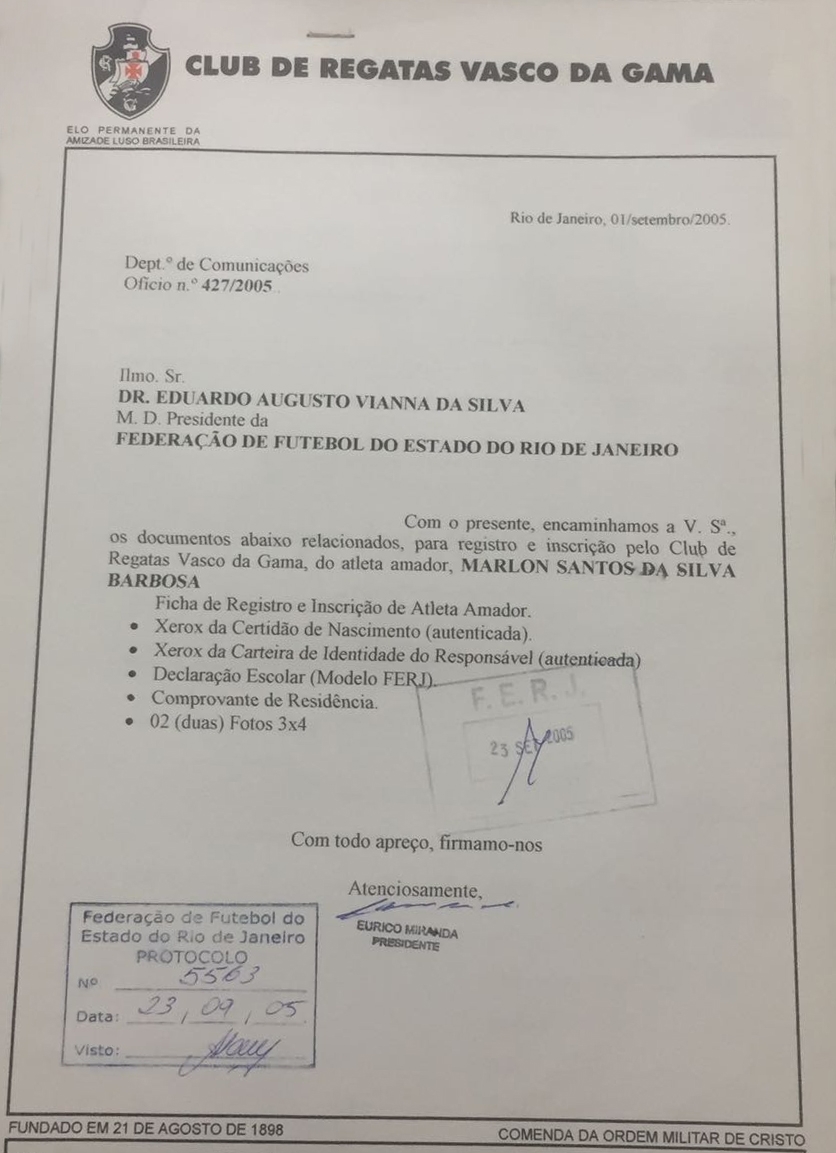 Reforço do Barcelona para a sequência da temporada européia, o zagueiro Marlon Santos foi descoberto pelo Vasco da Gama no futsal, em meados de 2003. Em 02 de agosto de 2005, através de uma ficha de avaliação, o atual diretor geral das categorias de base Álvaro Miranda, que na ocasião exercia o cargo de treinador da categoria pré-mirim, solicitou o registro do defensor após observá-lo em três treinamentos e identificar que se tratava de um jogador acima da média.