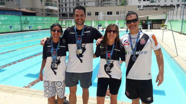A equipe vascaína (foto acima), conquistou ainda a medalha de prata no revezamento 4 x 50m livre misto, disputado neste domingo.