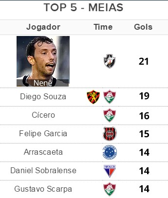 Quem disse que a função dos caras é só armar o jogo? Tem muito meia que invade a área e não hesita em chutar. É o caso de todos esses aqui do lado. Nenê, do Vasco, colaborou na Série B com 13 gols e liderou a artilharia por um tempo, até ser ultrapassado por Bill, que fez 15. No Carioca, ainda deixou a marca em sete oportunidades.