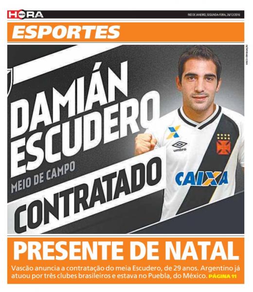 MEIA ARGENTINO ESCUDERO É O NOVO REFORÇO DO VASCO