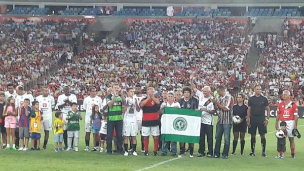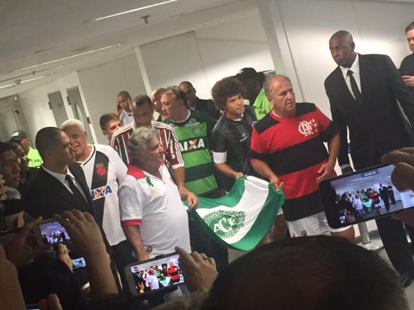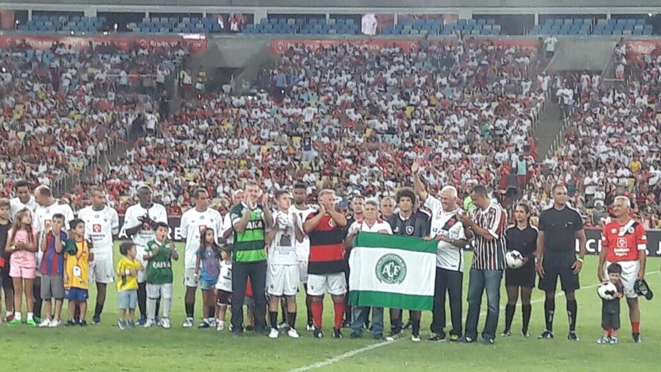 Zico (Flamengo), Camilo (Botafogo), Alexandre Torres (Fluminense), Roberto Dinamite (Vasco) e Maringá (Chapecoense) entrarão em campo representando os quatro clubes do Rio, com uma bandeira do time catarinense.