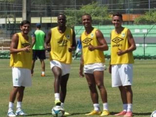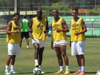 Dinamite (na ponta direita da foto) se juntou ao elenco do Boavista a pedido do treinador Joel Santana, visando manter a forma física. Ele vem participando da rotina de treinamentos, mas não está confirmado entre os contratados da próxima temporada. O atacante de 24 anos, formado nas categorias de base do Vasco, ainda defendeu Duque de Caxias e Oeste (SP) em sua carreira profissional.