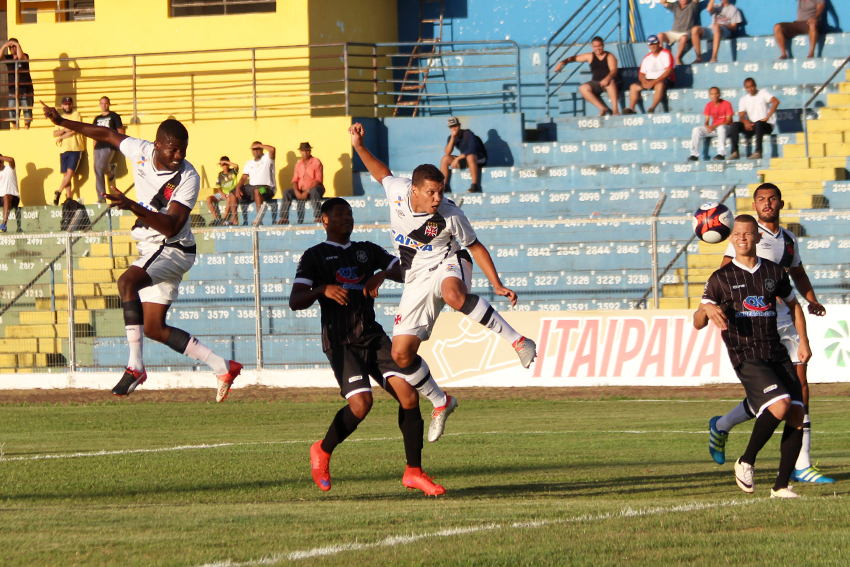 Precisando do resultado positivo, o Vasco iniciou a partida pressionando a saída de bola do Rio Branco. As primeiras oportunidades, entretanto, foram do time capixaba. O Gigante da Colina chegou pela primeira vez aos 13 minutos, mas foi eficiente. Após cobrança de falta de Elias, Athyla subiu mais alto que toda a defesa adversária e testou a bola para o fundo das redes: VASCO 1 x 0. O gol trouxe ainda mais confiança ao Cruzmaltino, que manteve a posse de bola e não deu chances ao rival no decorrer da etapa inicial.