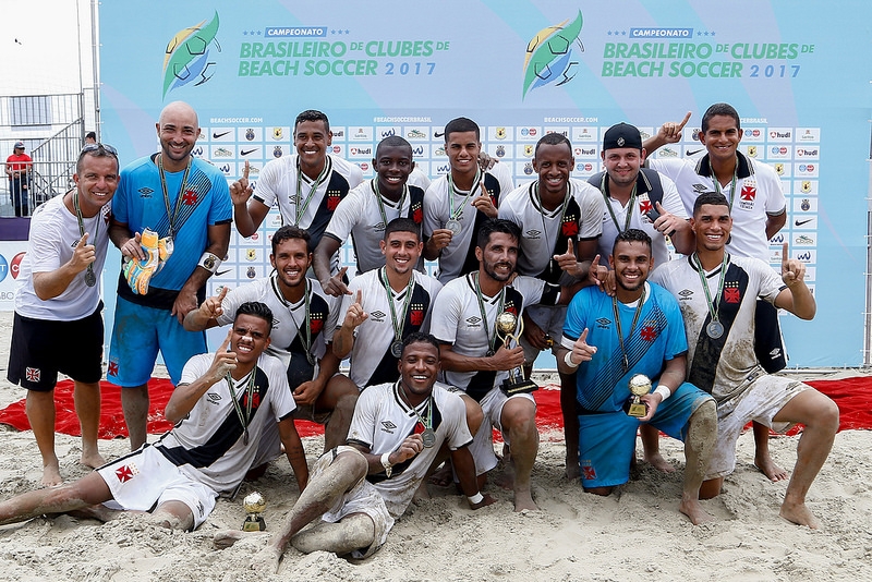 O Vasco da Gama é o campeão do Campeonato Brasileiro de clubes de beach soccer 2017, competição que foi disputada na praia do Gonzaga, em Santos (SP). O ‘Trem-Bala da Areia’ venceu o Sampaio Corrêa, de virada, por 5 a 1 (gols de Bokinha (2) Mauricinho, Lucão e Antônio, com Datinha descontando), há pouco, na tarde deste domingo, dia 8, e entoou o ‘Casaca!’ na praia do litoral paulista. Com o resultado, o Cruzmaltino completou sua coleção de títulos nas areias do país, onde já estão os troféus do Mundialito de clubes (2011), do bicampeonato da Copa Brasil Manaus (2012-2014) e do Desafio RJ-SP (2010), entre outros.