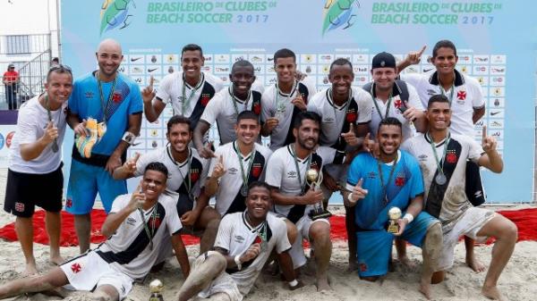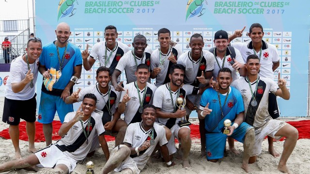 O Vasco da Gama é o campeão do Campeonato Brasileiro de clubes de beach soccer 2017, competição que foi disputada na praia do Gonzaga, em Santos (SP). O ‘Trem-Bala da Areia’ venceu o Sampaio Corrêa, de virada, por 5 a 1 (gols de Bokinha (2) Mauricinho, Lucão e Antônio, com Datinha descontando), há pouco, na tarde deste domingo, dia 8, e entoou o ‘Casaca!’ na praia do litoral paulista. Com o resultado, o Cruzmaltino completou sua coleção de títulos nas areias do país, onde já estão os troféus do Mundialito de clubes (2011), do bicampeonato da Copa Brasil Manaus (2012-2014) e do Desafio RJ-SP (2010), entre outros.