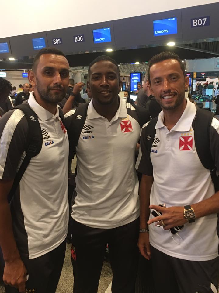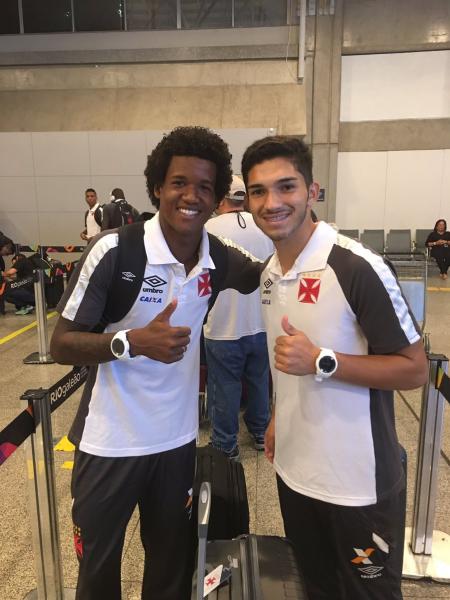 Alan e Andrey posam no Aeroporto Internacional Tom Jobim. O Vasco embarcará daqui a pouco, rumo aos EUA para disputar a Florida Cup.