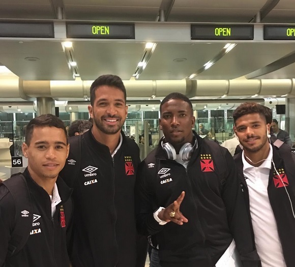 vascodagama Pikachu, Luan, Thalles e Henrique aguardam para a passagem na imigração. Delegação vascaína acaba de desembarcar em Houston, nos EUA. 5h30, no horário local.