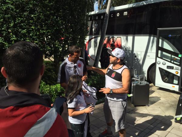 Fred Huber @FredHuber Torcedores aproveitaram para tietar os jogadores. #gevas Tem torcedores do Vasco no aguardo da delegação no hotel em Boca Raton #gevas