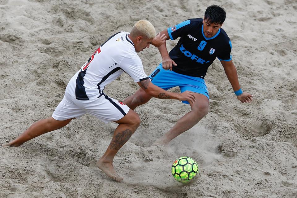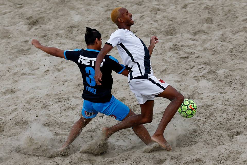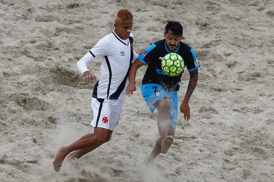 Na partida mais complicada da primeira fase da Copa Libertadores de futebol de areia, o Vasco venceu o Deportivo Iquique, do Chile, nesta quinta-feira por 7 a 5 e se garantiu na próxima fase da competição, realizada em Santos. Diferentemente dos dois primeiros jogos - em que conseguiu goleadas por 7 a 1 sobre Reales Miranda, da Venezuela, e 8 a 1 sobre Hamacas FC, da Bolívia, - o Cruz-maltino só conseguiu garantir o triunfo nos dois minutos finais da partida e assegurou a classificação antecipada para a semifinal da competição internacional. Os gols do Vasco foram marcados por Rafinha, Boquinha (4) e Mauricinho (2). Echeverria, Argote, Belaunde (2) e Yañez fizeram para o time chileno.