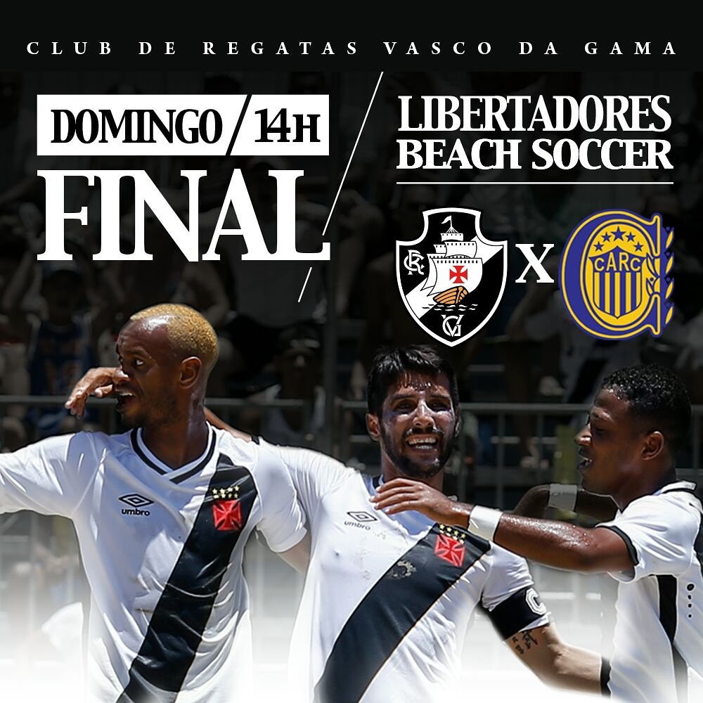 Vasco da Gama @vascodagama Daqui a pouco, às 14 horas, o #TremBalaDaAreia disputa a final da Libertadores de Beach Soccer, contra o Rosario Central. #VamosVasco