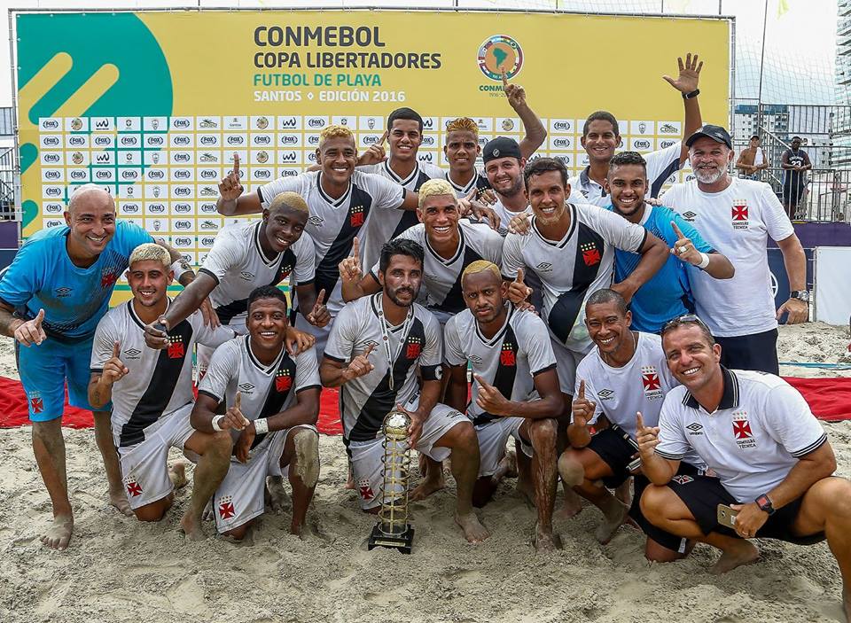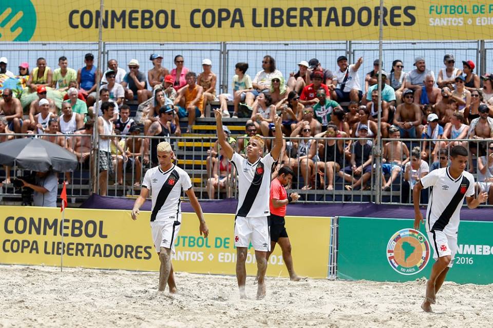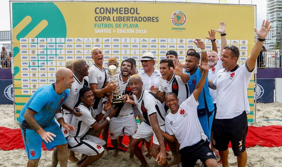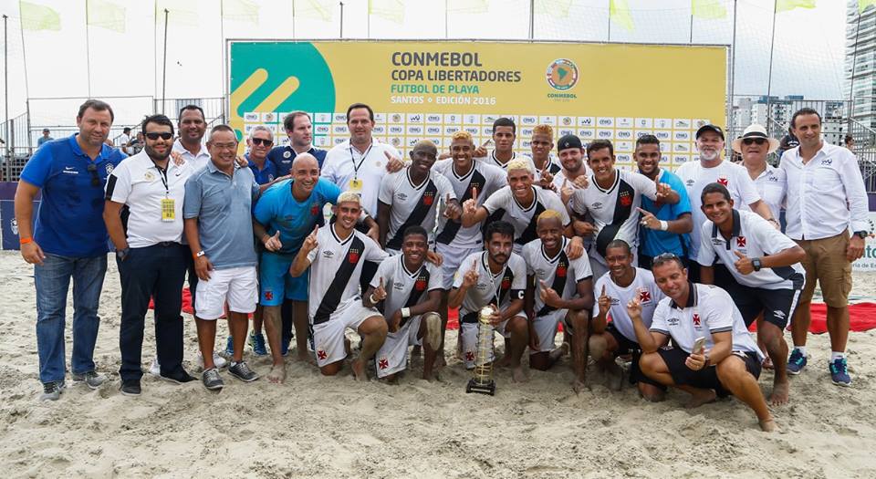 O Vasco da Gama é o primeiro campeão da Copa Libertadores de Beach Soccer. Neste domingo, na arena da Praia do Gonzaga, o “Trem Bala da Areia” incendiou Santos e conquistou o título inédito da competição ao vencer o Rosario Central, da Argentina, por 8 a 1, com gols de Boquinha (3), Mauricinho (3), Luquinhas e Rafinha; D’Amico descontou para os argentinos. O Club D. Iquique ficou com a terceira colocação.