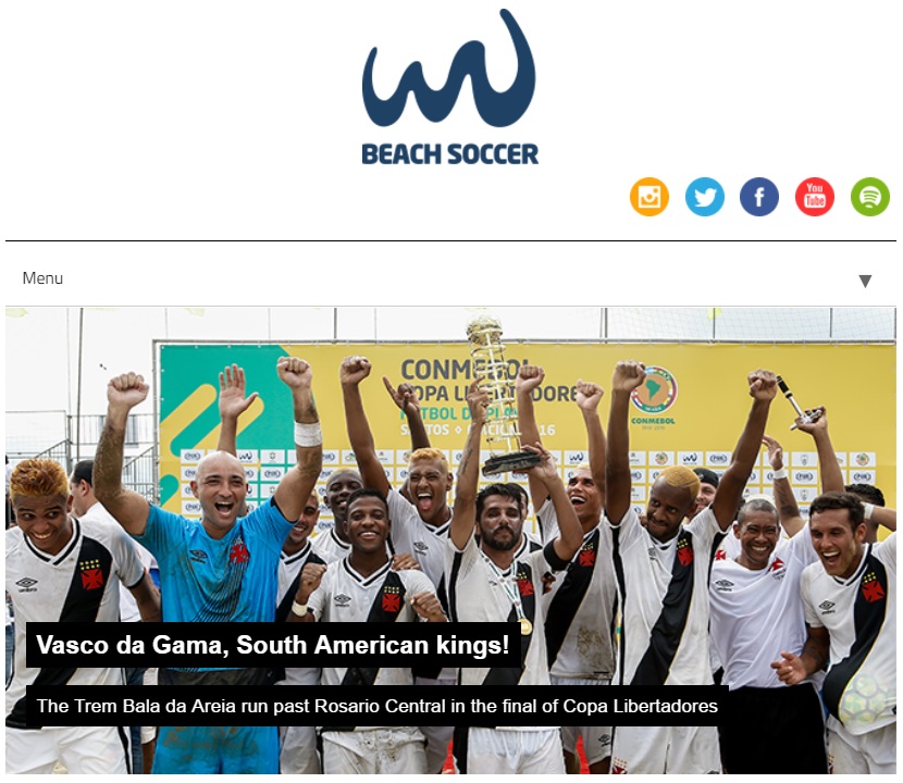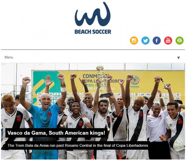 Incendiou e conquistou o continente! O Vasco da Gama goleou o Rosario Central (ARG) por 8 a 1 e levantou a taça da Copa Libertadores da América de beach soccer na primeira edicão da competição. Os gols do "Trem Bala da Areia" foram marcados por Mauricinho (3), Bokinha (3), Luquinhas e Rafinha. Pelo lado argentino, Damico descontou. O torneio foi realizado na praia do Gonzaga, em Santos (SP).