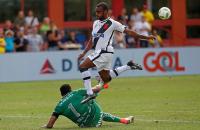 Aos 15 minutos, o Vasco criou e desperdiçou sua primeira grande chance para marcar. Muriqui foi lançado nas costas da zaga, mas o goleiro Banguera saiu com precisão e defendeu o chute do atacante.