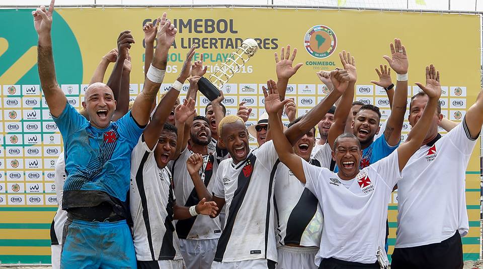 O Vasco da Gama é o primeiro campeão da Copa Libertadores de Beach Soccer. Neste domingo, na arena da Praia do Gonzaga, o “Trem Bala da Areia” incendiou Santos e conquistou o título inédito da competição ao vencer o Rosario Central, da Argentina, por 8 a 1, com gols de Boquinha (3), Mauricinho (3), Luquinhas e Rafinha; D’Amico descontou para os argentinos. O Club D. Iquique ficou com a terceira colocação.