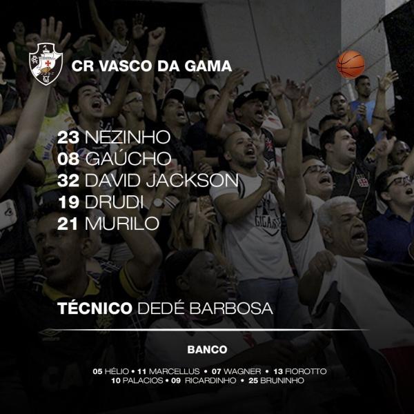 Vasco da Gama @vascodagama Quinteto titular do #GiganteDoBasquete para enfrentar o Macaé!