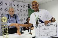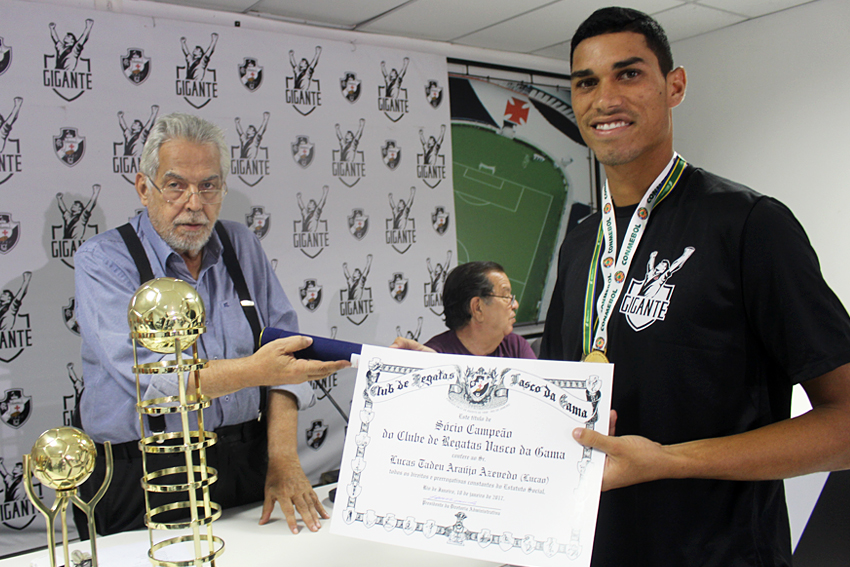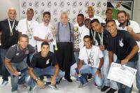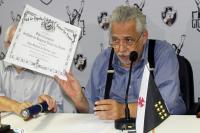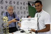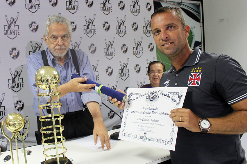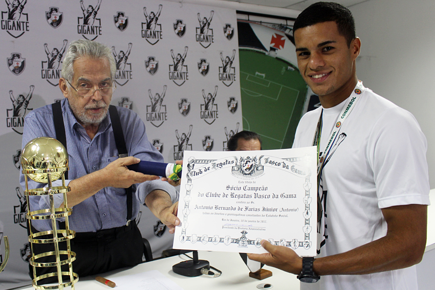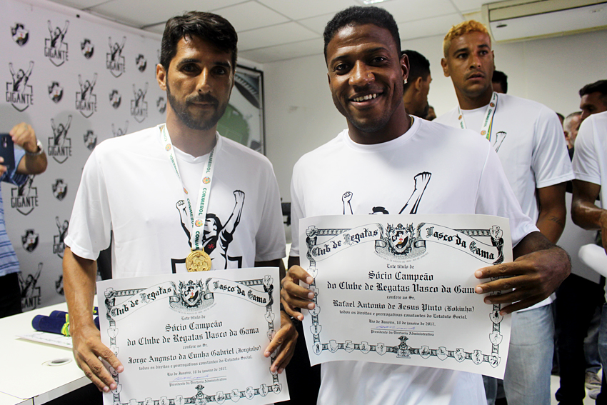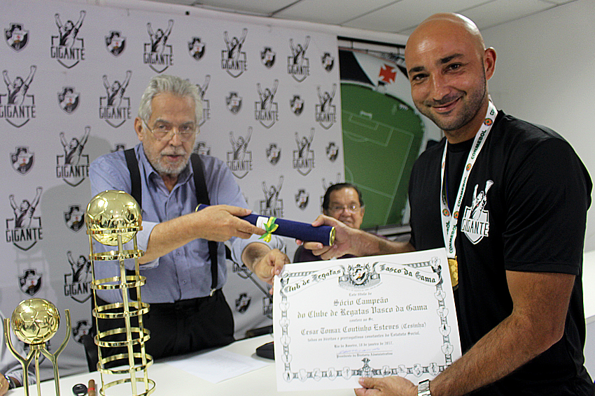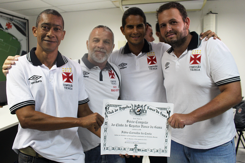 Os heróis do inédito título foram homenageados na tarde desta quarta-feira (18/01) na Sala do Conselho de Beneméritos Carlos Alberto Martins Cavalheiro, localizada no Complexo Esportivo de São Januário. Os jogadores do Beach Soccer cruzmaltino receberam das mãos do presidente Eurico Miranda o título de sócio-campeão, honraria dada pelo clube aos esportistas que representam a instituição de maneira positiva.