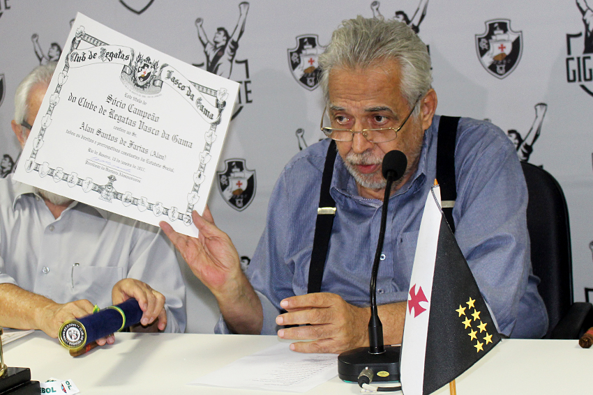 - Já falei pessoalmente com cada um, mas faço questão de explicar o motivo dessa solenidade. O Vasco está homenageando esse atletas porque eles conquistaram um título que merece todo o reconhecimento. Todos os poderes estão presentes, o que mostra que o feito foi algo da maior importância para o clube. Resolvemos dar o "sócio campeão" para cada um. Esse título é dado aos que efetivamente contribuíram para a vitoriosa história do Vasco. É bom deixar claro que todos terão todos os direitos estatutários. Então, é uma homenagem da maior importância - afirmou o presidente Eurico Miranda.