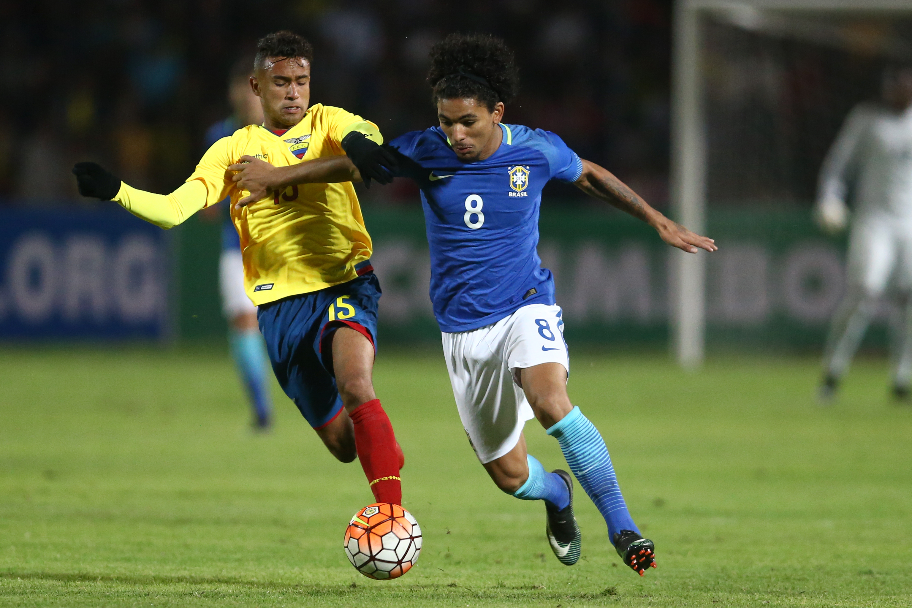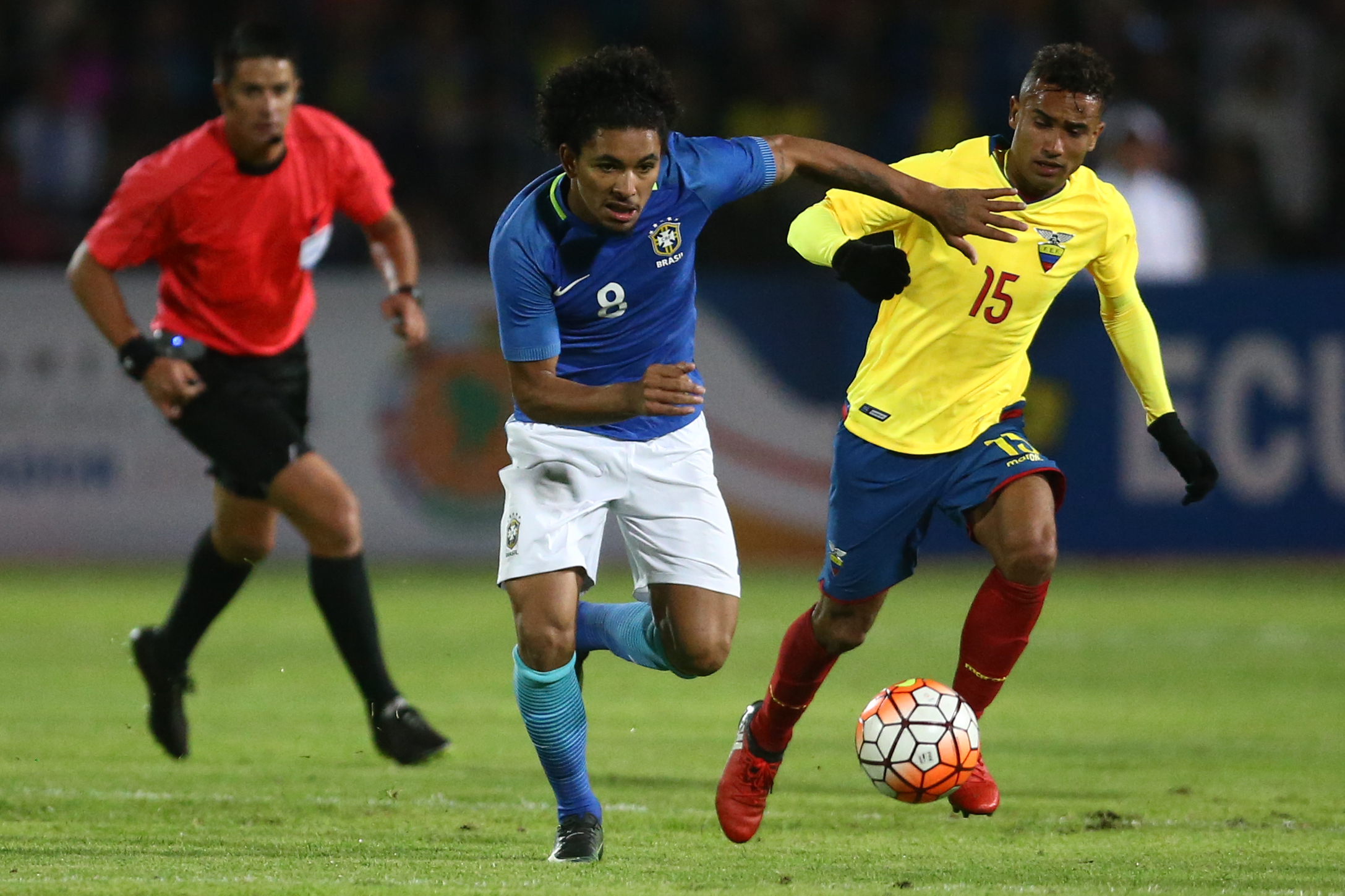 O equilíbrio marcou o primeiro tempo da partida em Riobamba. O Brasil foi superior nos primeiros minutos e teve boas chances de gol. Em uma delas, Caio Henrique cobrou falta e obrigou o goleiro Cevallos a se esticar para fazer a defesa. Depois, aos oito minutos, Lucas Paquetá arrancou pelo meio e mandou para a área. David Neres evitou a saída da bola e passou para Richarlison, que tocou para o meio. Paquetá estava no lance, mas não alcançou a bola por muito pouco. Aos 17, em outra boa armação do camisa 10, Richarlison invadiu a área sozinho e rolou para Felipe Vizeu, que chutou por cima. Três minutos depois, Richarlison recebeu de David Neres e chutou forte para defesa de Cevallos. A partir dos 30 minutos, o Equador passou a investir mais e levou perigo. Em uma chance, Cabezas ficou cara a cara com o goleiro Caique, mas mandou para fora.
