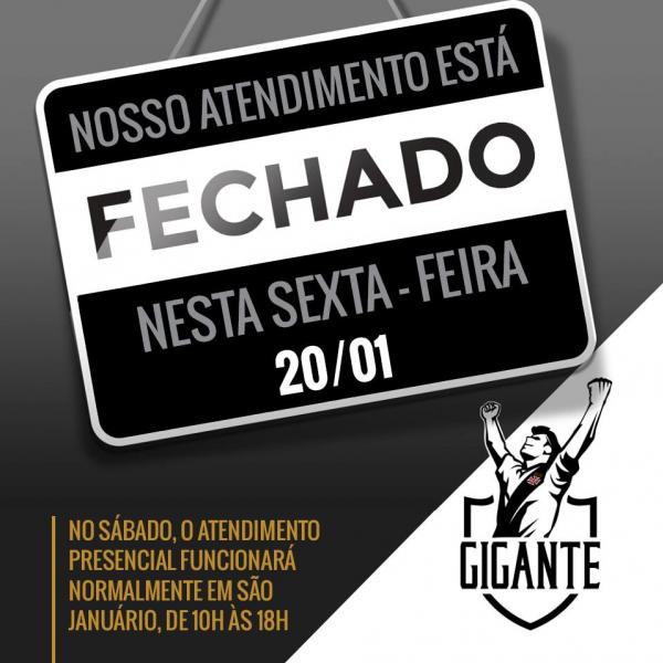 Devido ao feriado na cidade do Rio de Janeiro, não haverá funcionamento do atendimento do Gigante nesta sexta-feira.
