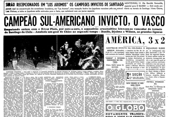 ![]() Jornal O Globo noticia conquista vascaína no Sul-Americano de 48 |