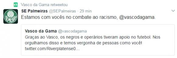 Após ofensas raciais de torcedor do River, Vasco recebe solidariedade de Corinthians, Palmeiras, Atético-MG e outros clubes