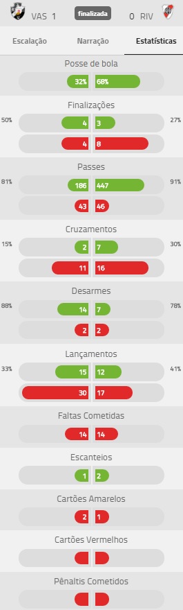Confira as estatísticas da partida Vasco 1 x 0 River Plate