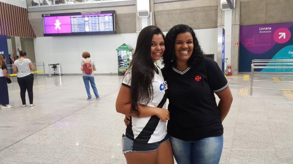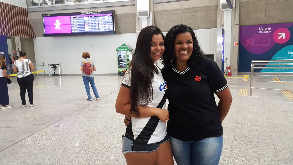 Bom dia! Já tem vascaínas esperando o time no Galeão. Amanda e Elane vieram de Duque de Caxias. #gevas