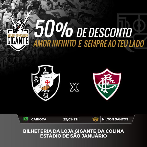 Todos os sócios-torcedores ativos dos planos Sempre ao Teu Lado e Amor infinito poderão adquirir seus ingressos com 50% de desconto para os setores Leste Superior e Inferior, na bilheteria da loja Gigante da Colina em São Januário, nos horários abaixo: