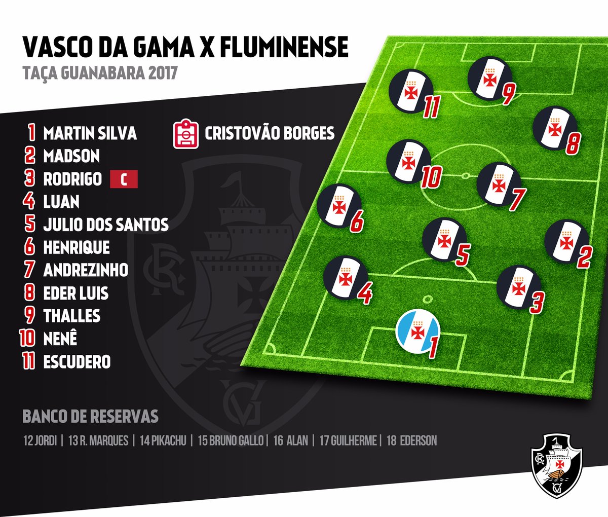 Escalação oficial do Vasco para o clássico contra o Fluminense no Estádio Nilton Santos. #VASxFLU