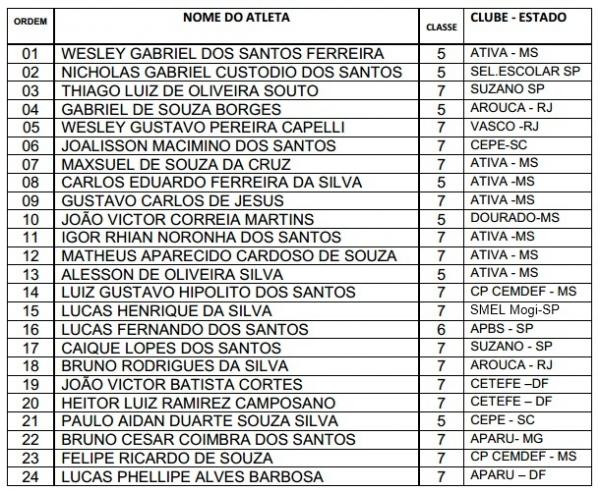 Lista dos convocados: