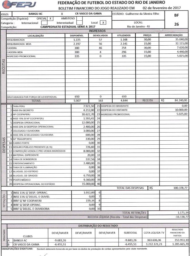 Jean Dutra @_jeandutra Bangu x Vasco rende prejuízo de mais de R$ 6.000 ao Vasco. Ferj lucra mais de R$ 7.000.