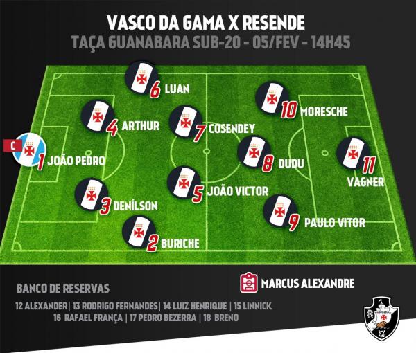 Vasco da Gama @vascodagama Escalação do Vasco para a partida contra o Resende! #CariocaSub20 #MeninosDaColina