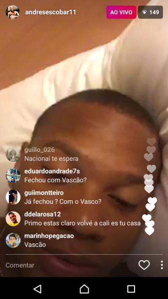 Manga encerrou o ao vivo com a torcida do Vasco falando: "Estou muito feliz, com muita garra para treinar e jogar" #lanceVAS