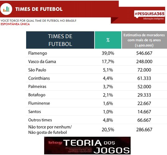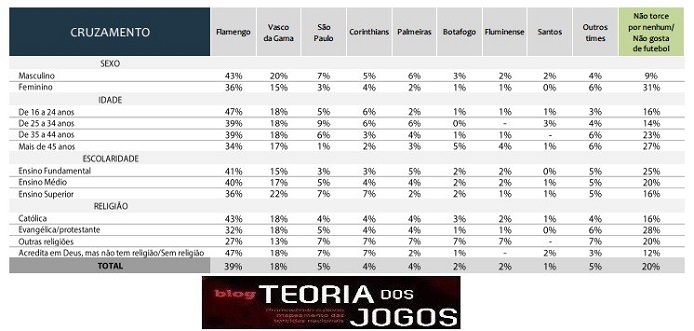Infelizmente, além de não contemplar recortes superiores nas faixas etárias (que vão apenas até os 45 anos), a pesquisa pisa na bola ao não contemplar a imprescindível análise sob a ótica da renda, substituída por uma descartável análise das torcidas segundo suas religiões.
