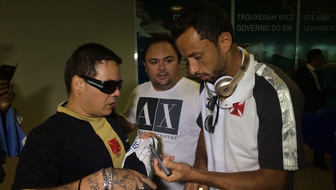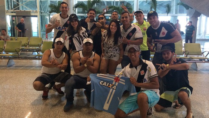 Entre selfies, gritos de guerra e cobranças de vitória - por goleada, inclusive -, cerca de 20 torcedores recepcionaram a delegação do Vasco no Aeroporto Internacional Aluízio Alves, na Grande Natal, na tarde desta quarta-feira. O meia Nenê e o goleiro Martín Silva foram os mais festejados no desembarque. O técnico Cristóvão Borges também foi bastante atencioso. A partida contra o Santos-AP é nesta quinta-feira, às 21h (de Brasília), na Arena das Dunas, na capital potiguar.