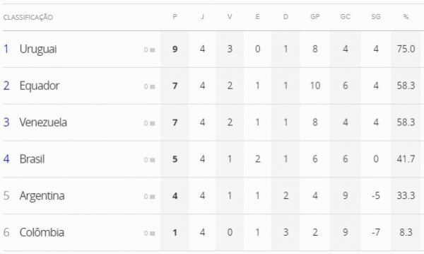 Com o resultado, o Brasil chegou a cinco pontos na tabela de classificação e segue na quarta colocação. A Seleção Brasileira volta a campo no próximo sábado (11), novamente no Estádio Olímpico de Atahualpa, para enfrentar a Colômbia. A partida está marcada para às 20h45 (de Brasília). Em caso de vitória, o time canarinho garante a vaga na Copa do Mundo Sub-20, que será disputada a partir do dia 20 de maio, na Coreia do Sul.