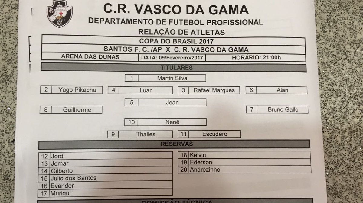 Fonte: Twitter oficial do Vasco