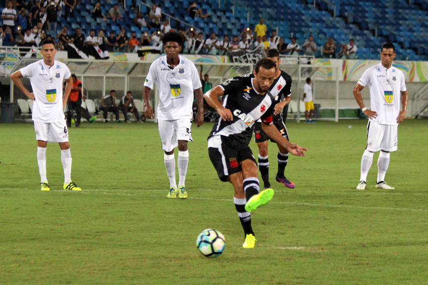 O time de São Januário seguia com o controle do jogo, mas encontrava dificuldades para criar jogadas nas próximidades da área santista. Aos 14 minutos, Pikachu derrubou Luciano Mota que arrancava pelo meio. A falta foi batida por Denilson e Martín Silva defendeu com segurança.