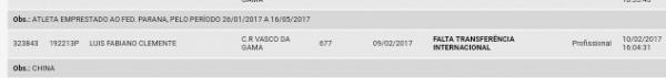 Luis Fabiano ainda tenta fazer sua rescisão de contrato com o Tiajin Quanjian, mas já foi inscrito pelo Vasco no Campeonato Carioca e seu nome entrou no Bira da Ferj nesta sexta, com a data de quinta-feira. A explicação é a seguinte: como o prazo expirava na última quinta, a diretoria cruz-maltina, após conversa com o centroavante, deu entrada na papelada e, quando a assinatura for feita na China, o documento será anexado, eliminando as pendências para a regularização do atleta.