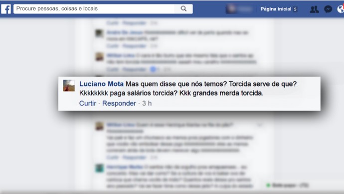 Na discussão virtual, um torcedor chegou a dizer que o próprio jogador estava menosprezando o clube e os colegas de time. Um deles ainda afirmou que o atacante é um exemplo que nenhuma equipe deve ter no seu time.