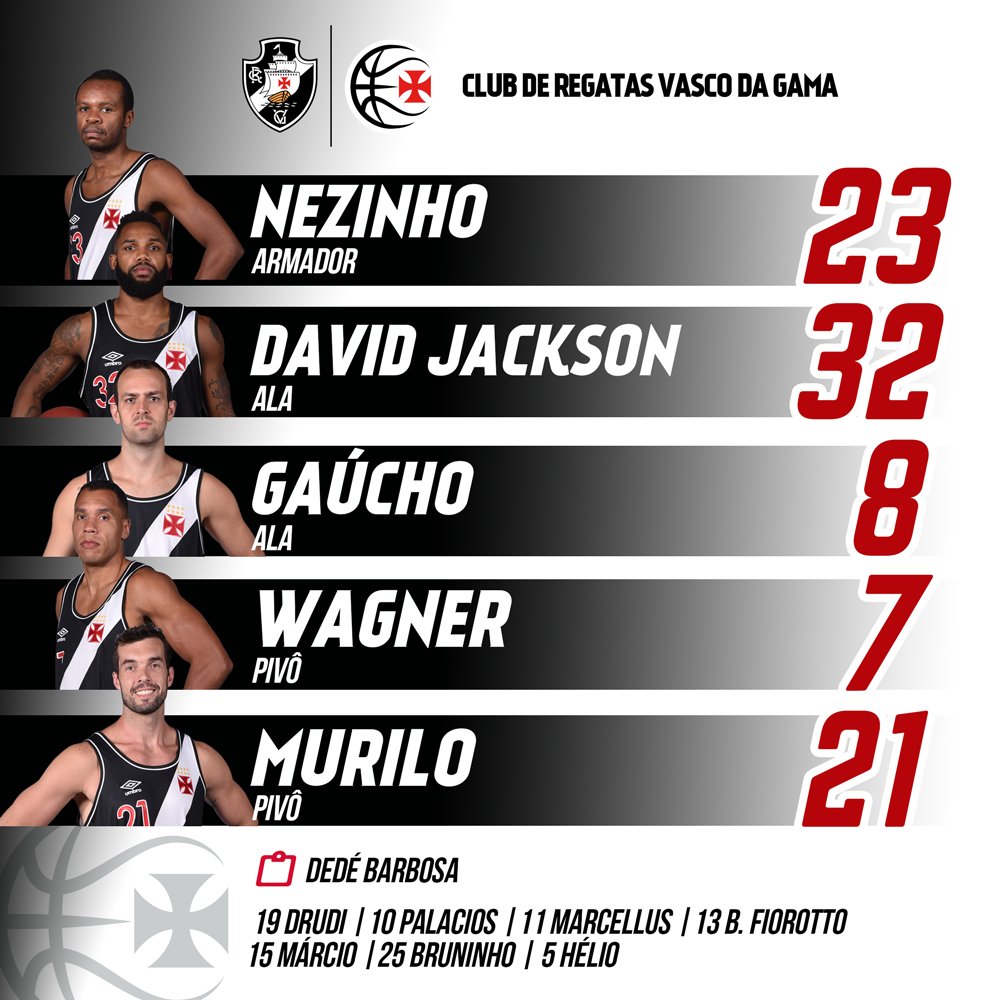 Vasco da Gama @vascodagama #GiganteDoBasquete escalado para o confronto contra o Campo Mourão. #VamosVasco