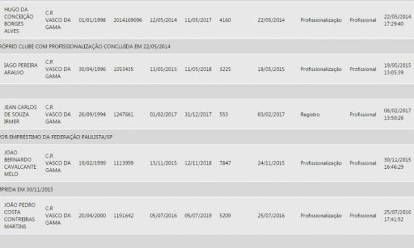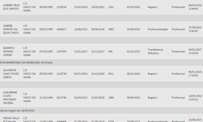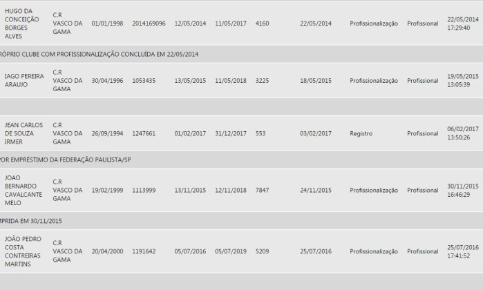 Uma publicação no site da Federação de Futebol do Rio de Janeiro (Ferj) mobiliza os bastidores do Campeonato Estadual. Clubes grandes e pequenos do Rio, ao consultarem ontem o Boletim Informativo de Registro de Atletas (Bira) da entidade, constataram que as datas de inscrição ou de registro dos jogadores Jean e Gilberto, recentemente contratados pelo Vasco, são posteriores aos prazos previstos no regulamento para que ambos pudessem ter participado do jogo com o Resende, no dia 5 de fevereiro, pela terceira rodada da Taça Guanabara.