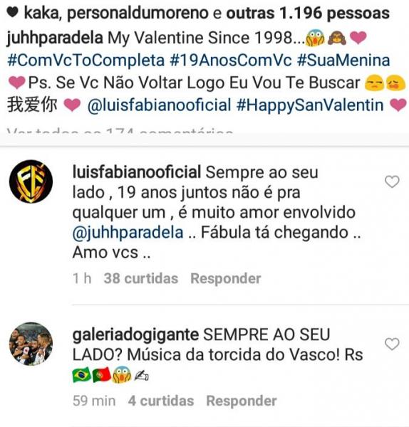 David Nascimento @daviddcn Há pouco, Luis Fabiano respondeu postagem da esposa Juliana Paradela. Inscrito pelo Vasco, Fabuloso chega ao Rio até fim da semana #lanceVAS pic.twitter.com/Kl9w7CXGkt