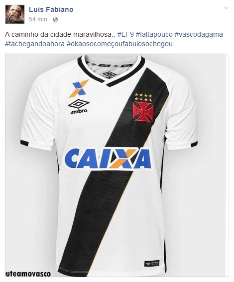 LUIS FABIANO POSTA CAMISA DO VASCO NAS REDES SOCIAIS E DIZ QUE ESTÁ CHEGANDO