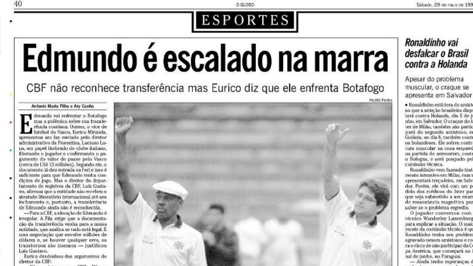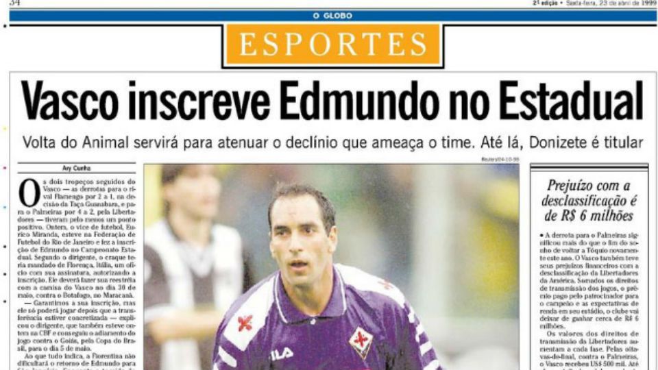 Mas não houve jeito. Edmundo foi apresentado em São Januário no fim de maio e, dias depois, enfrentou o Botafogo