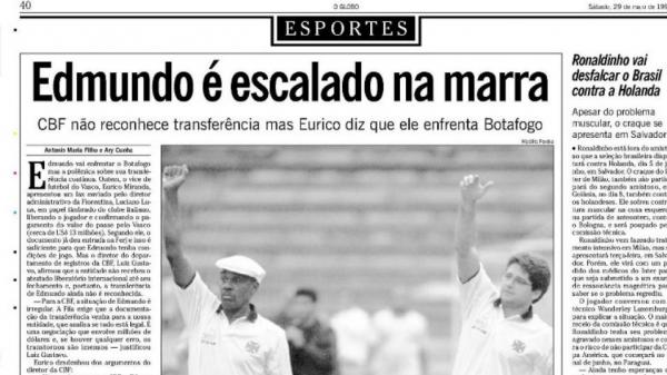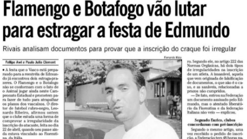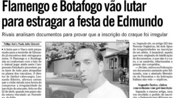 “Não podemos impedir Edmundo de jogar no domingo, mas nada impede que recorramos após o jogo. Não faz sentido uma data limite se o clube inscrever um jogador sem contrato”, disse Alberto Macedo, então vice de futebol do Botafogo.