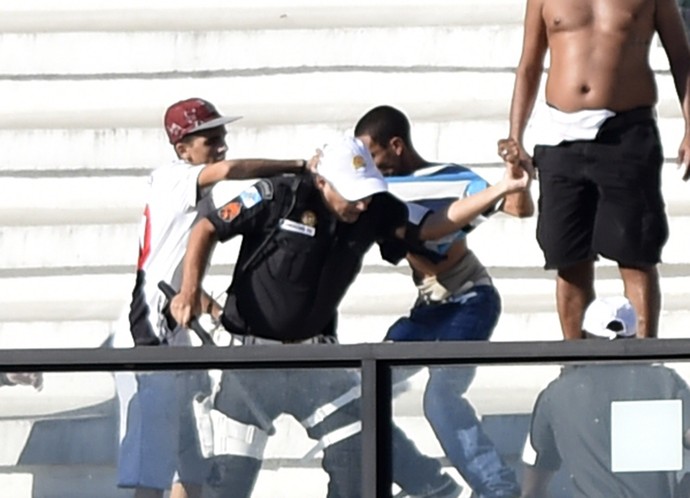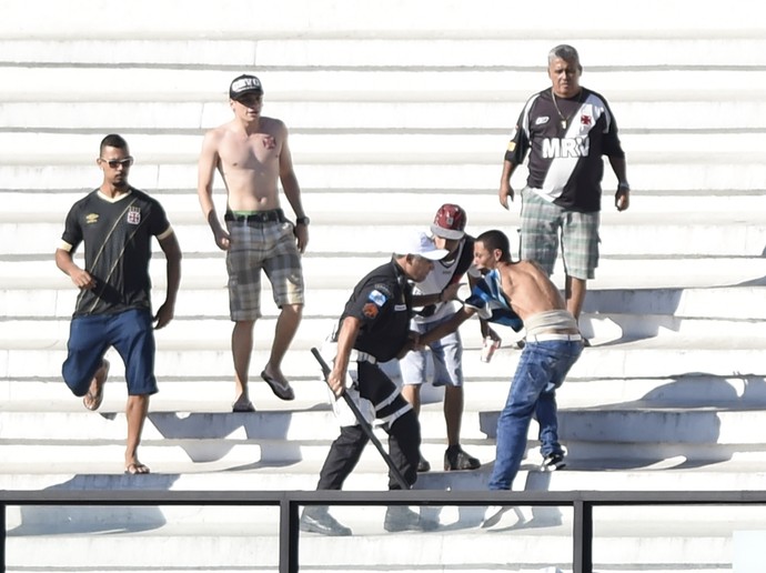 A confusão começou logo após o fim do primeiro tempo. Torcedores vascaínos o acharam na arquibancada e começaram a agredi-lo. A polícia veio e os afastou com golpes de cassetete. Os ânimos ficaram bastante exaltados. Com alguma dificuldade, os policiais conduziram o torcedor escoltado, que foi detido.