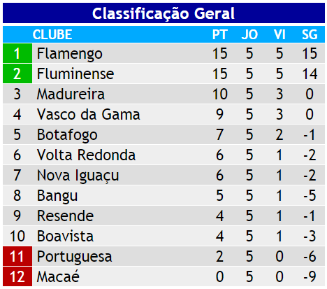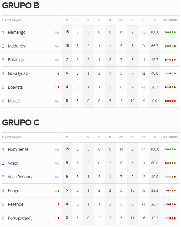 Terminada a 5ª e última rodada da 1ª fase da Taça Guanabara, o Vasco, que derrotou a Portuguesa por 1 a 0, se classificou para as semifinais como 2º colocado em seu grupo, o C. As semifinais serão Flamengo x Vasco e Fluminense x Madureira.